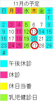 毎月の休診情報やインフルエンザの予約の情報などを
